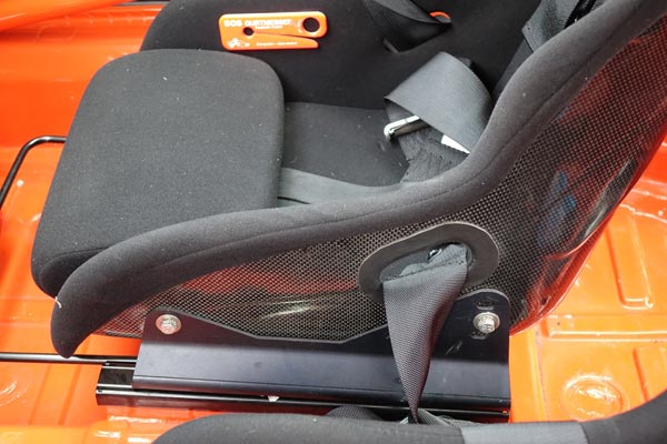 - Verbau einer gepolsterten offenen Helmkiste hinter den Sitzen als Ablagemöglichkeit