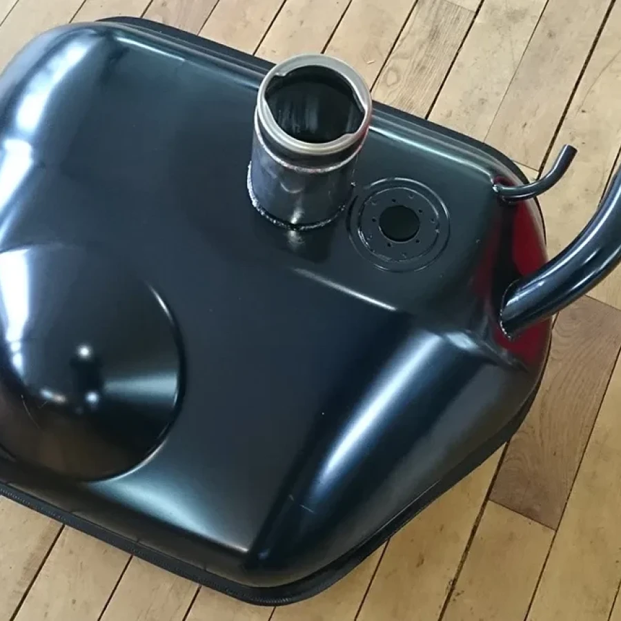 100 l Blech-Renntank, Zentralbetankung, Hahnenkamm-Deckel, für 911 (Bj. 68–88), Ersatzrad nutzbar.