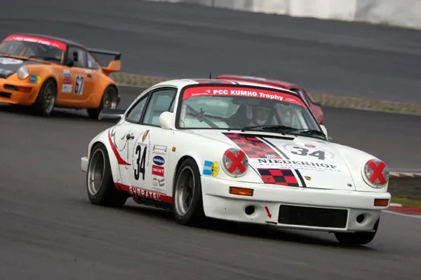 Es war schon ein hartes Stück Arbeit für die Akteure der PCC Kumho Trophy 2008. Das Wetter im 1. Training wollte nicht so recht mitspielen. So war die Strecke so kalt, das alle Fahrer Mühe hatten, ihre Reifen auf Temperatur zu bringen. In der Klasse 3, Porsche 911 3,2 ltr. Fahrzeuge gab Gastfahrer Paul Hunsperger eine Sondervorstellung. Er versuchte im Drift seine Rennreifen zu erhitzen und das sehr spektakulär. Gebracht hat es ihm nichts. Startplatz 14 war der Lohn seiner Mühe. Im 1. Rennen musste er in der 1. Runde nach einem Unfall ausscheiden.