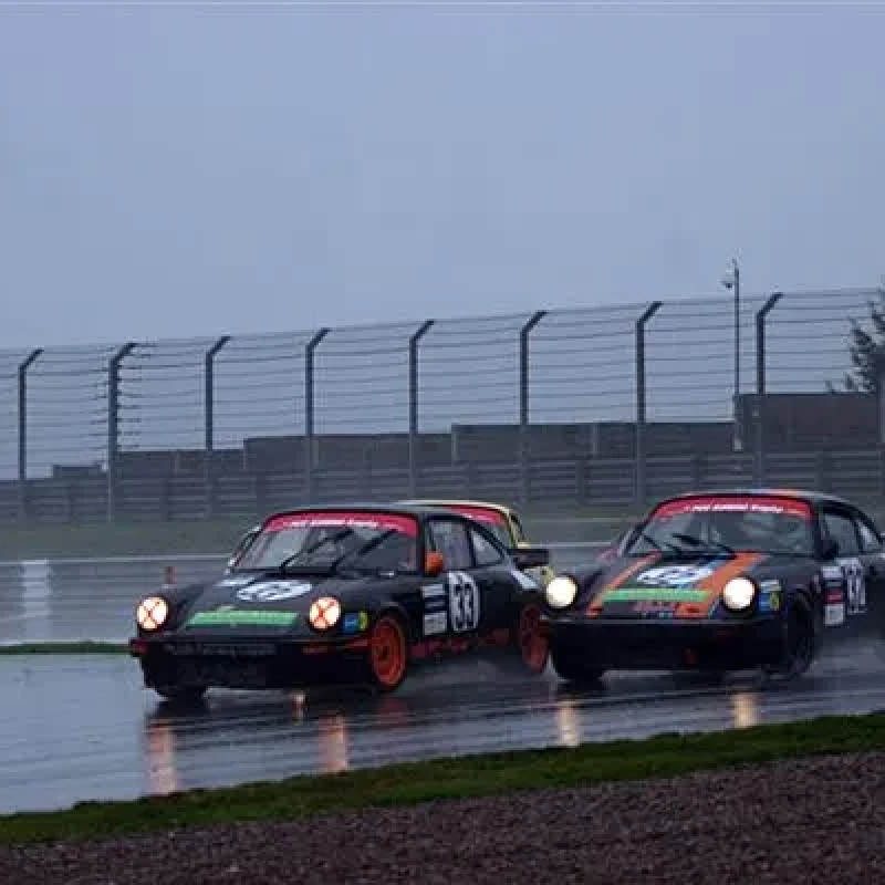 Im Rennen 2 am Sonntag Morgen 9,05 Uhr bei sehr starkem Regen, von der Rennleitung wurde “WetRace” angesagt, gab es für Kohlmorgen in seinem überbreiten 911 3,5 nichts weiter zu tun, als das Auto auf der Strecke zu halten. Der Regen war so stark und die Piste hatte teilweise Sturzbäche, so das seine breiten Regenreifen in jeder Bremszone aufschwammen und er große Mühe hatte, mit seinem Auto nicht in das Kiesbett abzufliegen. Das Rennen als Sieger beendet in beeindruckender Fahrweise Roland Ziegler im Paarlauf mit Kurt Ecke und als Dritter Udo Schwarz. Mathias Dankmer fuhr in dieser Regenschlacht erst einmal so, wie man ihn von vielen Rennen kennt. Die Folge war eine Doppelpirouette in der ersten Kurve nach Start und Ziel. Ohne Einschlag brachte er seinen 911 3,2 wieder auf die Strecke und errang Platz zwei auf dem Siegerpodest hinter Mathias Wasel und vor Paul Hunsperger in der Gruppe der “klassischen” Porsche.