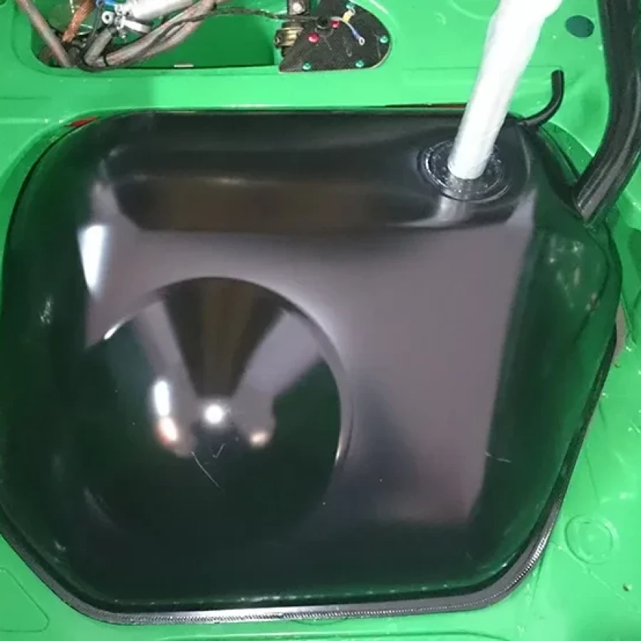 Nachbau 100-Liter Renntank, Zentralbetankung, Ersatzrad im Kofferraum möglich.