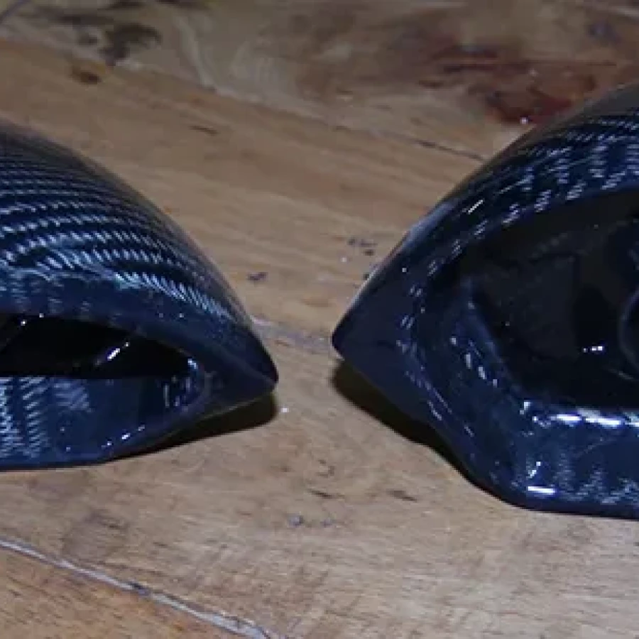Rennsportspiegel in Tropfenform mit Kunststoffspiegelglas, Carbon Sockel.