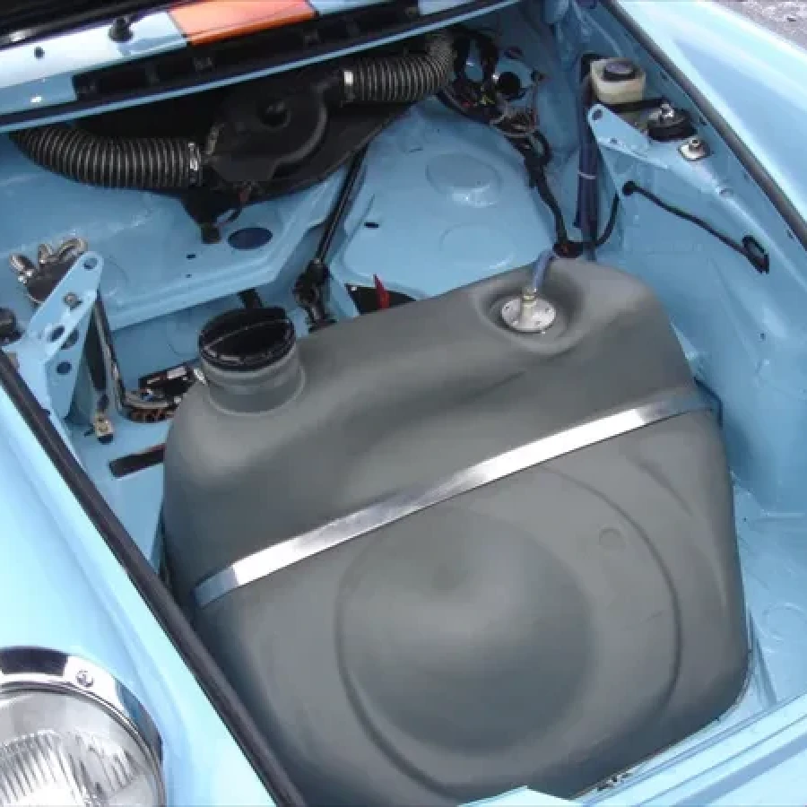 110-Liter Renntank, Kunststoff, Ersatzrad im Kofferraum möglich.
