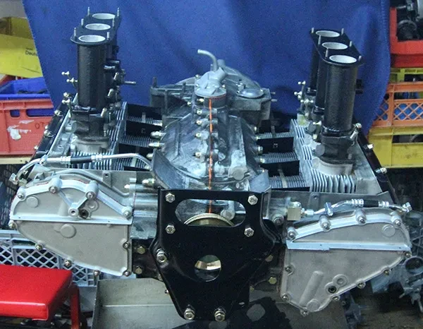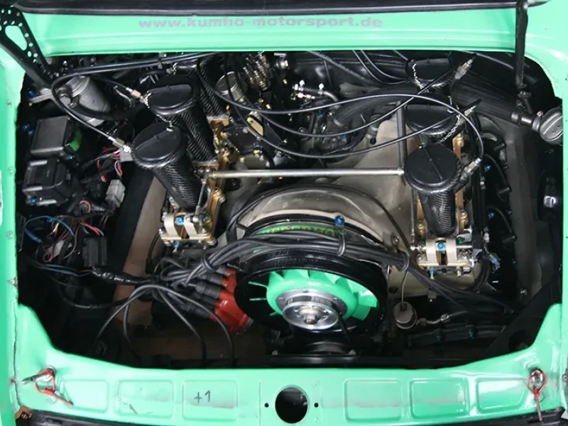 Nach kompletter Zerlegung und Vorab-Durchsicht des Motors werden alle Teile in der Heißwaschmaschiene gewaschen, anschließend vermessen wir jedes Teil, das Herzstück des Motors die Kurbelwelle wird in der Zylinderschleiferei auf Schlag geprüft, sowie auf Risse geröngt, anschließend wird die Kurbelwelle feingewuchtet und geläppt (auf Hochglanz poliert). Die Pleuel werden ebenfalls geröngt und neu gewinkelt. Das Kurbelgehäuse wird wenn nötig, mit einer neuen Grundbohrung versehen. Steht eine Hubraumerhöhung an, so können wir auch die Zylinderbohrung aufspindeln. Sollte die Nikasil Zylinderbeschich- tung beschädigt sein, so können wir auch diese erneuern. Wenn der Motor nun mit neuen Lagern, Steuerketten, Kolbenringen usw zusammengebaut wird, litern wir nochmals die Verdichtung mit der Pipette von jedem Zylinder aus. Nachdem nun Pleuel und Kolben einzeln aufs Gramm ausgewogen und angeglichen wurden, können wir einen Top Motor fertigstellen. Je nach Einsatz Gebiet des Motors ob sportlich, Straße, Slalom, Rallye, Berg oder Rundstrecke wird der Nockenwellen Hub und die Ein- und Auslaß-Kanalgröße bestimmt.